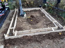 Первым делом мы вынесли с территории участка всё лишнее, а также прополи землю на могиле, одновременно с этим возводя дощатый периметр – одну из сторон будущей опалубки.