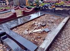 После того, как работа была проведена, клиент посчитал, что в задней части места захоронения требуется дополнительное укрепление. Мы вкрутили пять дополнительных свай, сварили новую сетку и залили ещё одну площадку, которая будет являться основанием для памятников.